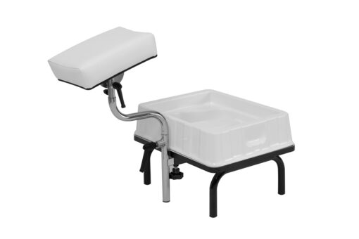 Abbinabile a qualunque modello di poltrona il poggiapiedi regolabile e amovibile corredato di bacinella è ideale per eseguire i diversi trattamenti di pedicure